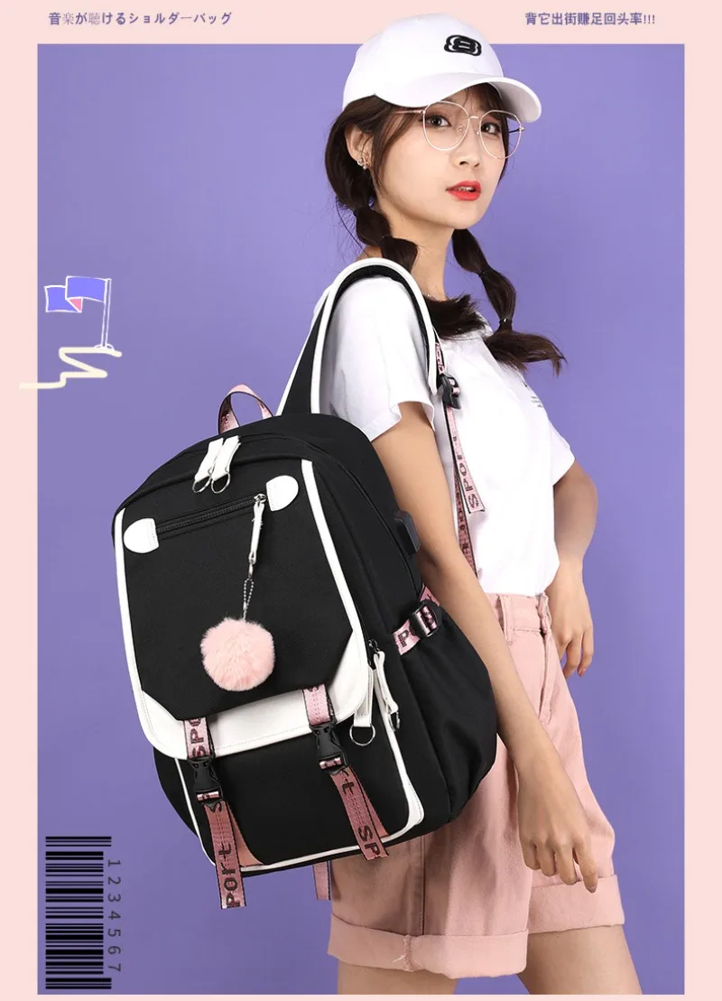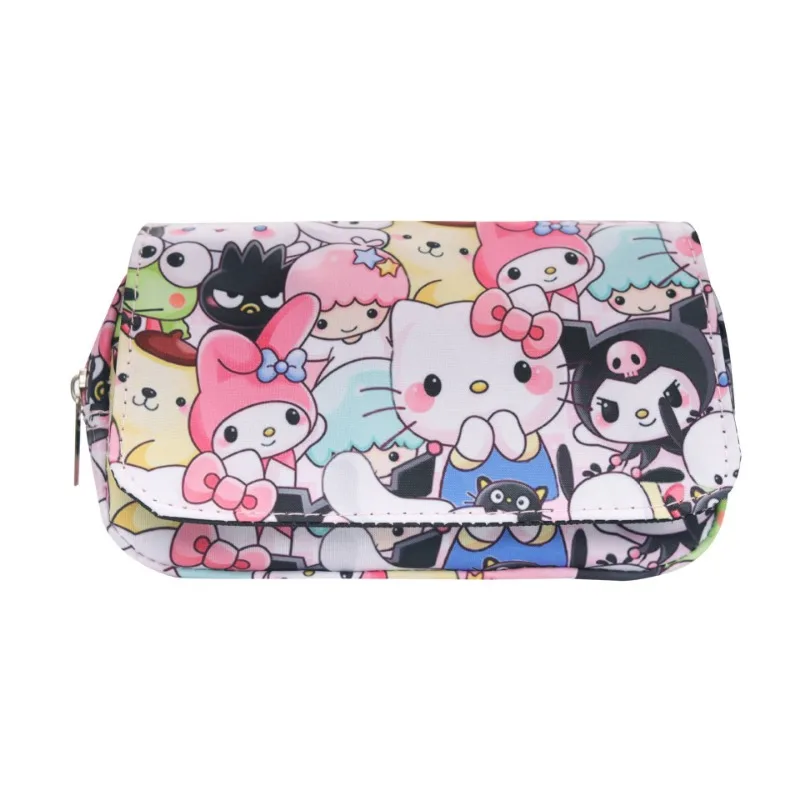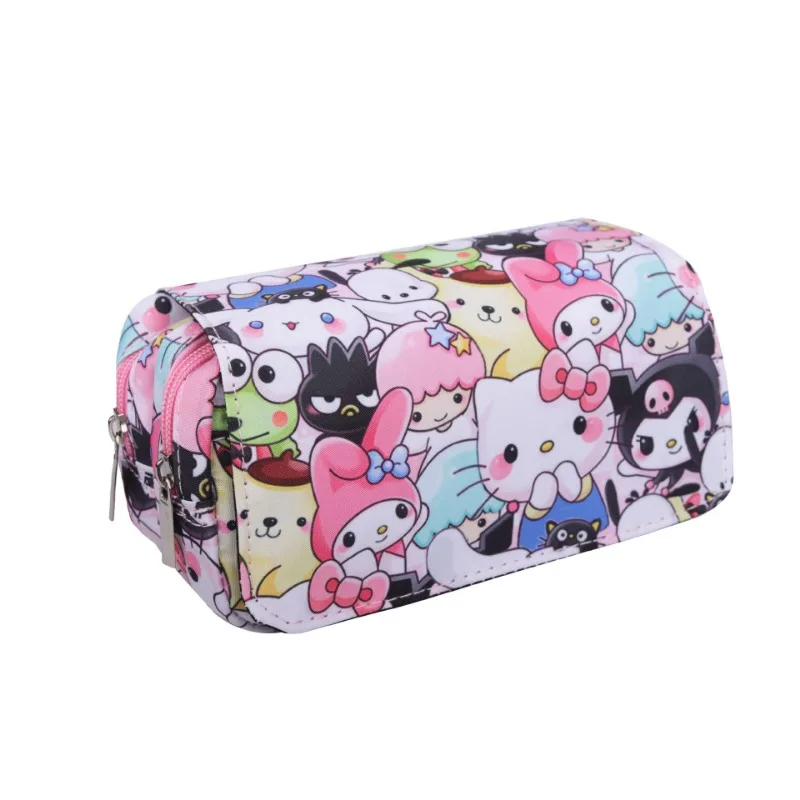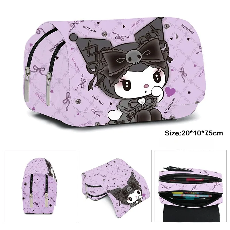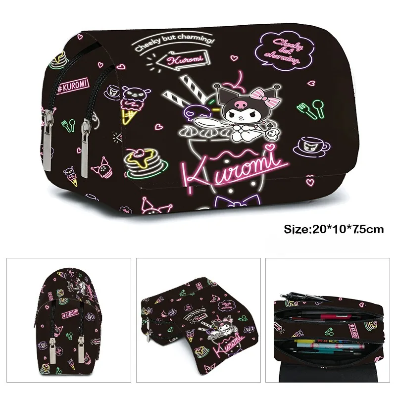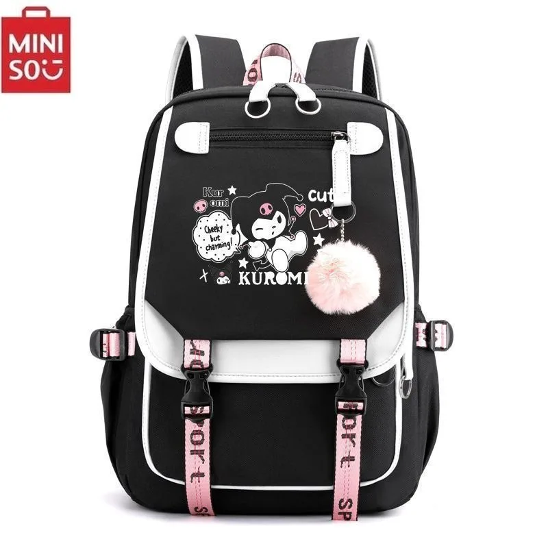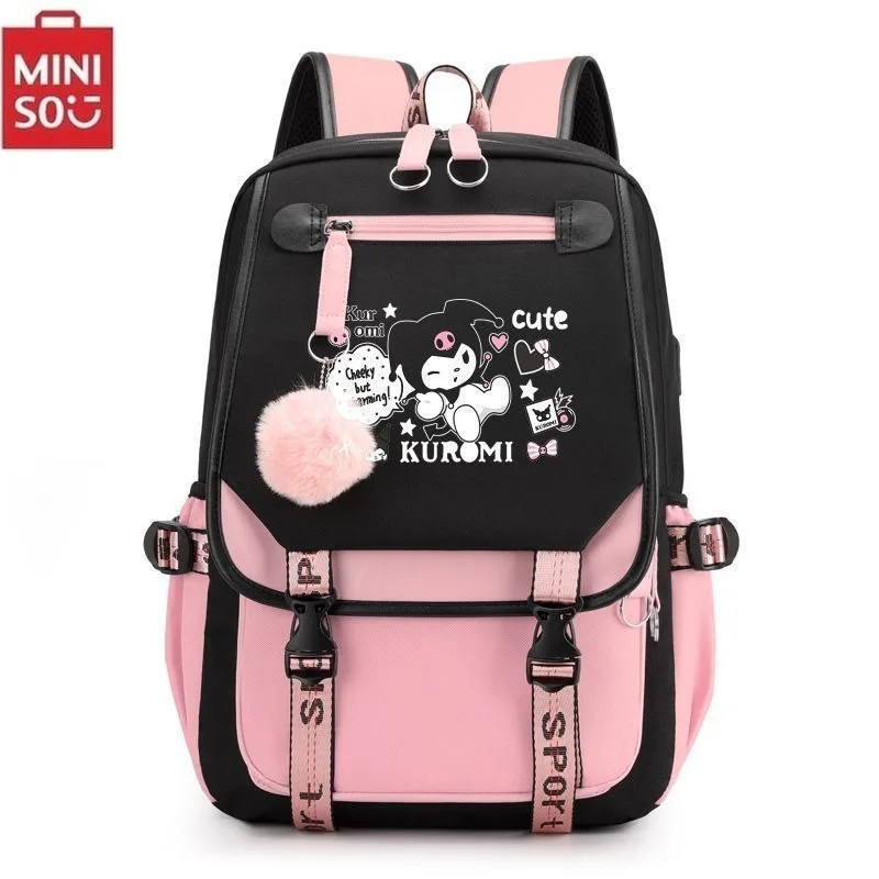 MINISO Kuromi Schoolbag Students Kawaii Double-layer Pencil Bag Large-capacity Casual Backpack Cartoon Printing Pen Bag