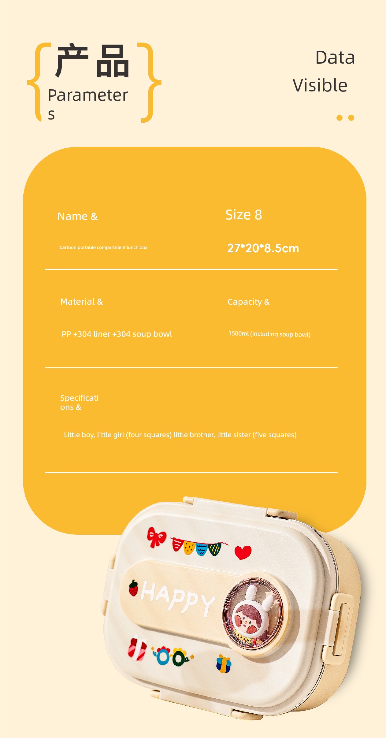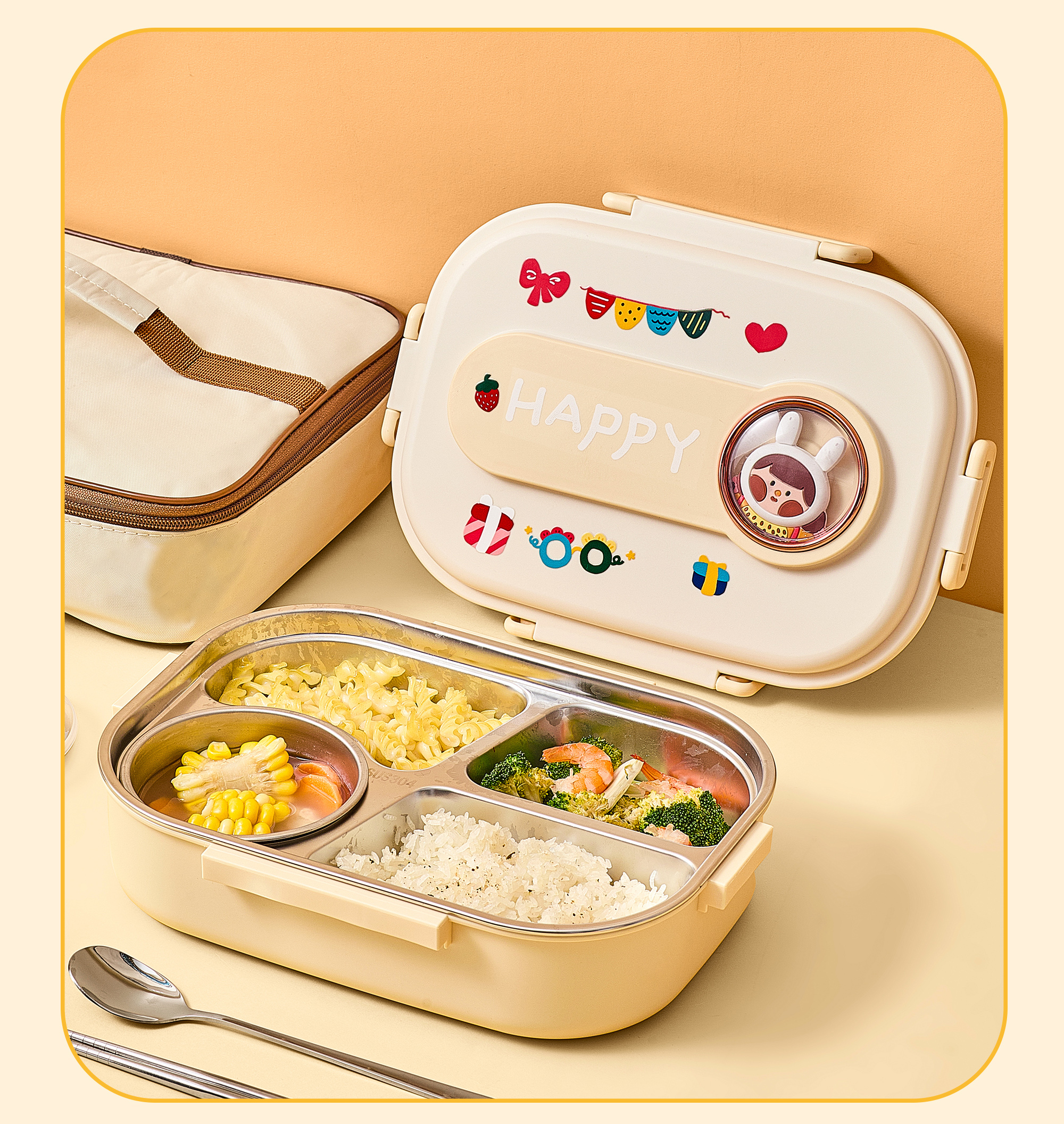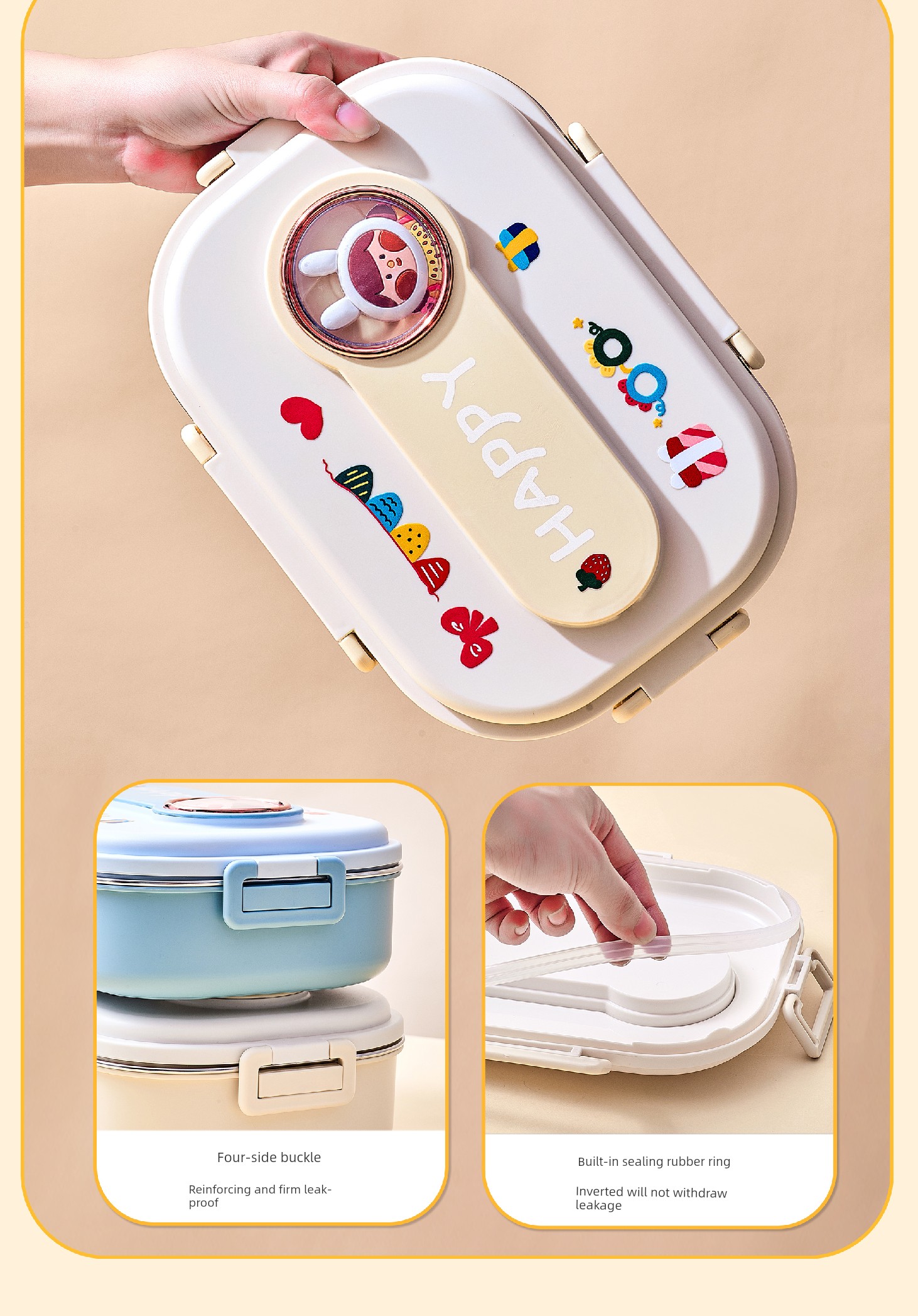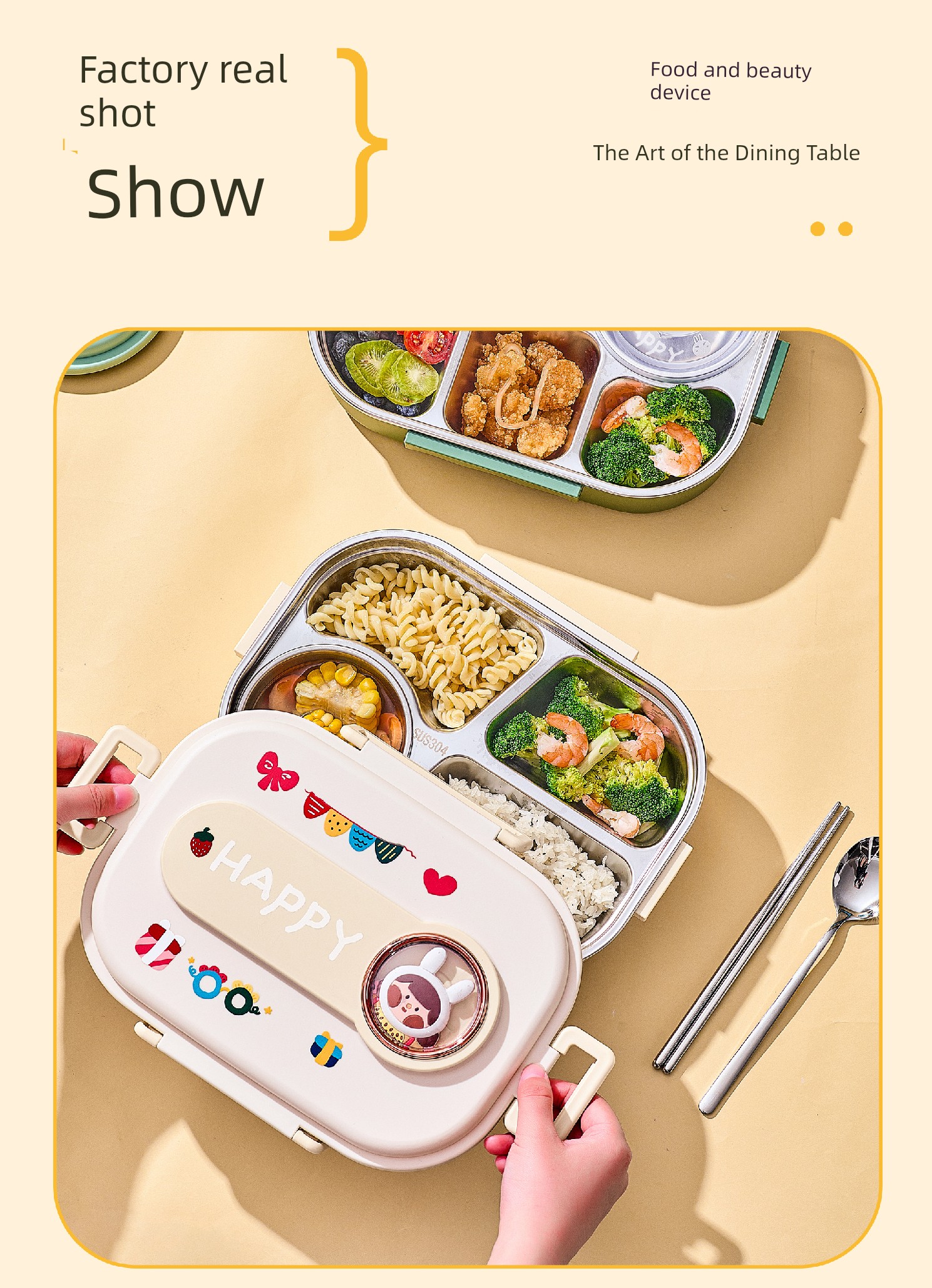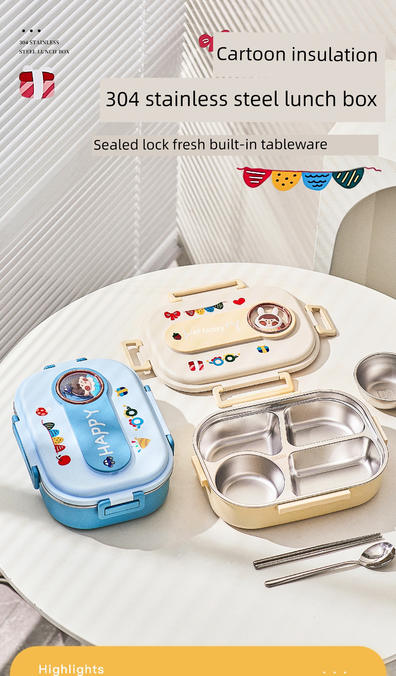 Stainless Steel Lunch Box Cute Kids Lunch Box Insulated Lunch Box for Primary School Students Student Tableware for Junior High School Students